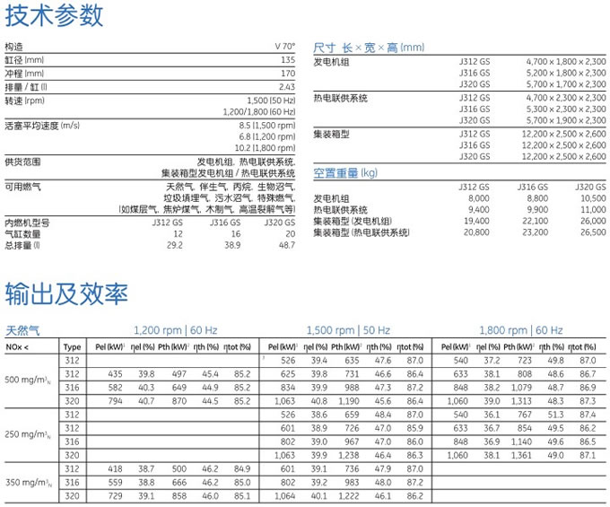 颜巴赫JMS320GS燃气发电机组的主要技术参数: