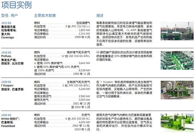 GE Jenbacher(颜巴赫)的燃气发动机与颜巴赫燃气发电机组占有率达到35%以上,特殊气体的发动机与颜巴赫燃气发电机组占有率更高达80%。它已经为全世界提供了数以万计的各种规格的燃气发动机,获得了全球客户的普遍好评,2007年底全球累计装机容量已达4GW。
