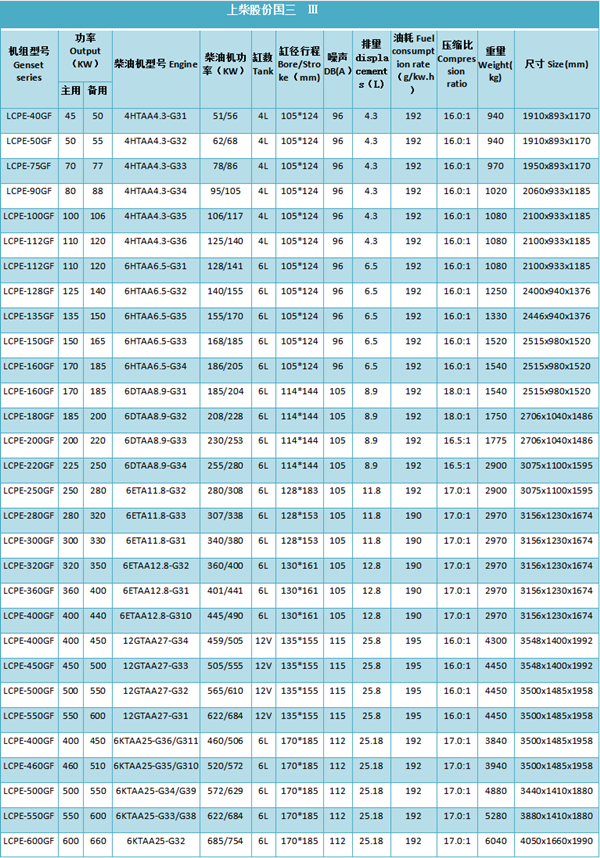 三.上柴国二柴油发电机组产品型号及参数