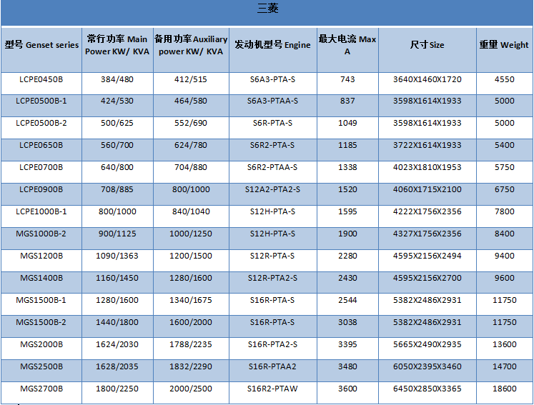 三菱重工柴油发电机组在同行业中具有体积小、重量轻、低耗油量、高输出功率