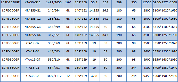 重庆康明斯国三柴油发电机组产品型号及参数: